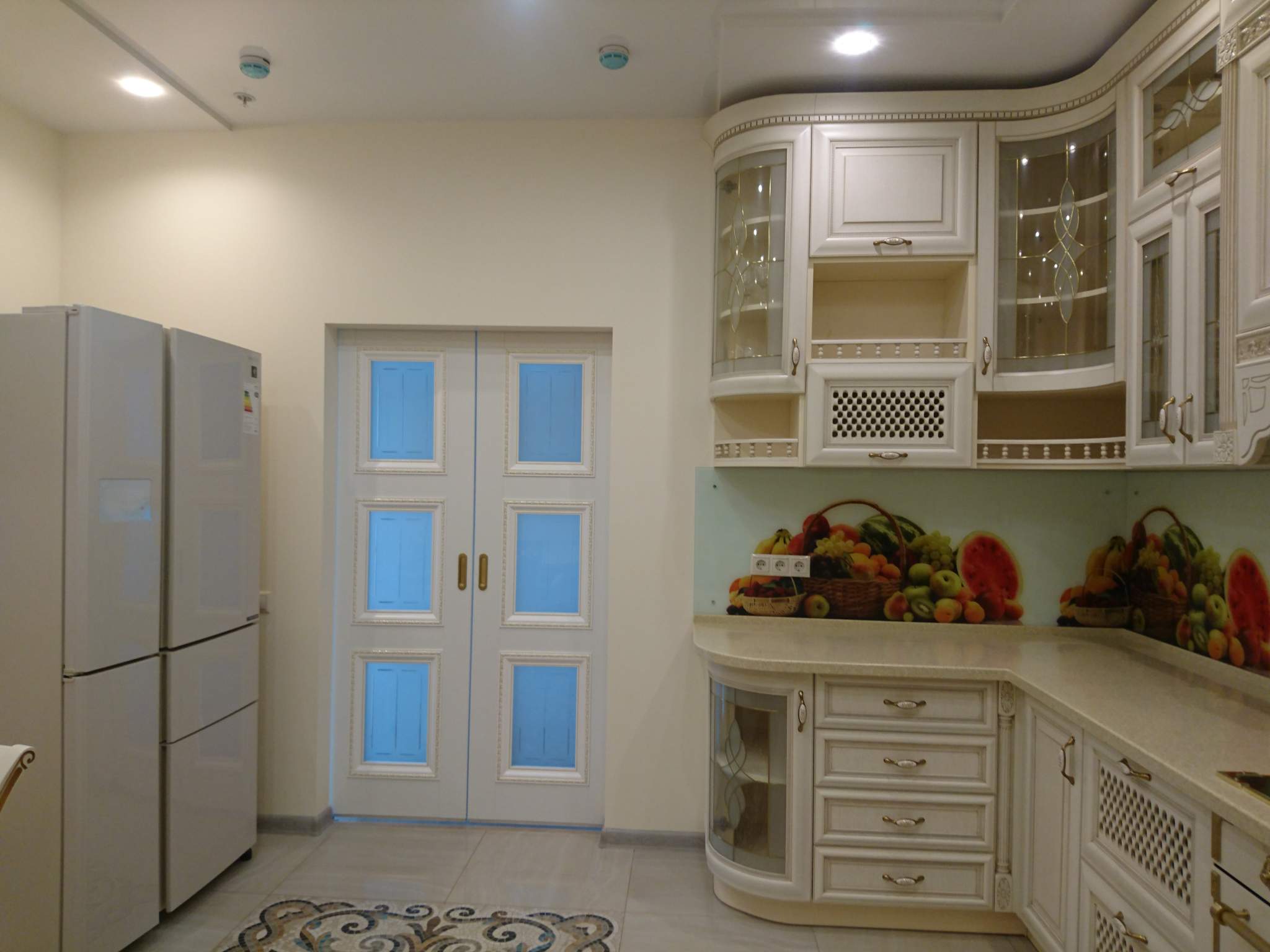 Жилая площадь 84 м2, кухня 16 кв. м, в квартире 8 спальных мест, внутри евро ремонт, комнаты изолированные. Квартира меблированная, интернет, два телевизора, два холодильника, спорт уголок, отдельная комната-гардероб и прочее. Раздельных санузлов 1, в ванной комнате душевая кабина и прочее.