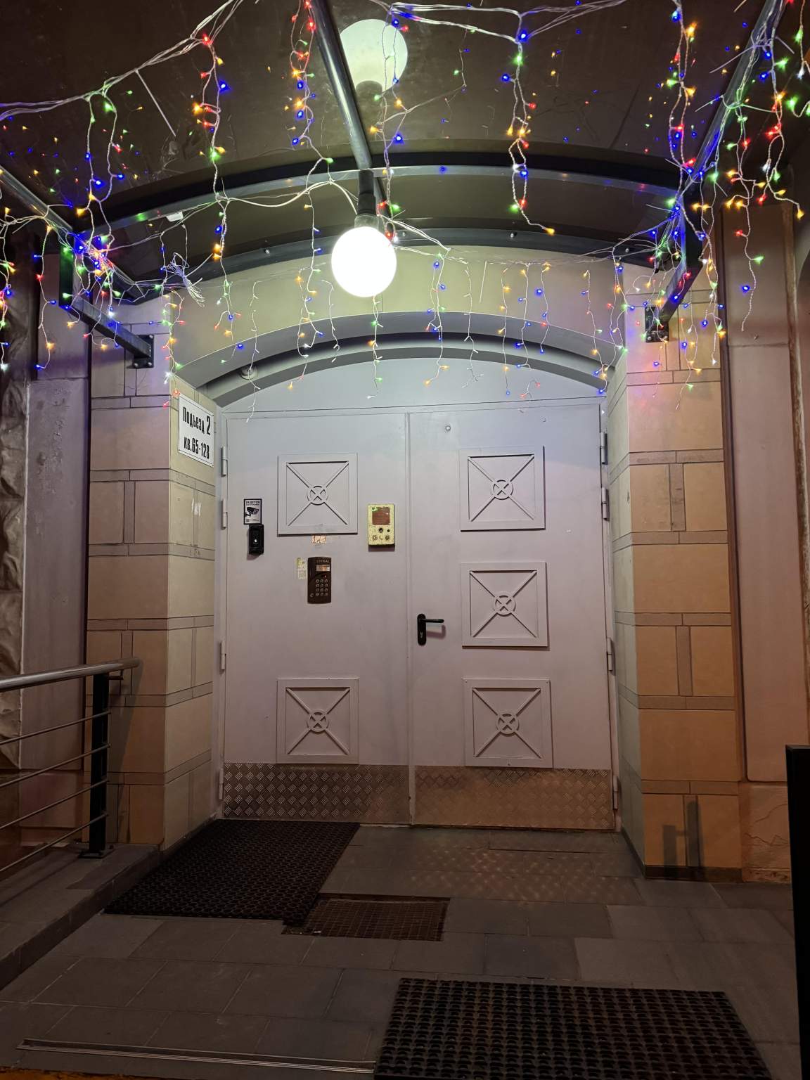 Чистый подъезд, современный дом – 17 этажей, лифты, видеонаблюдение, домофон.