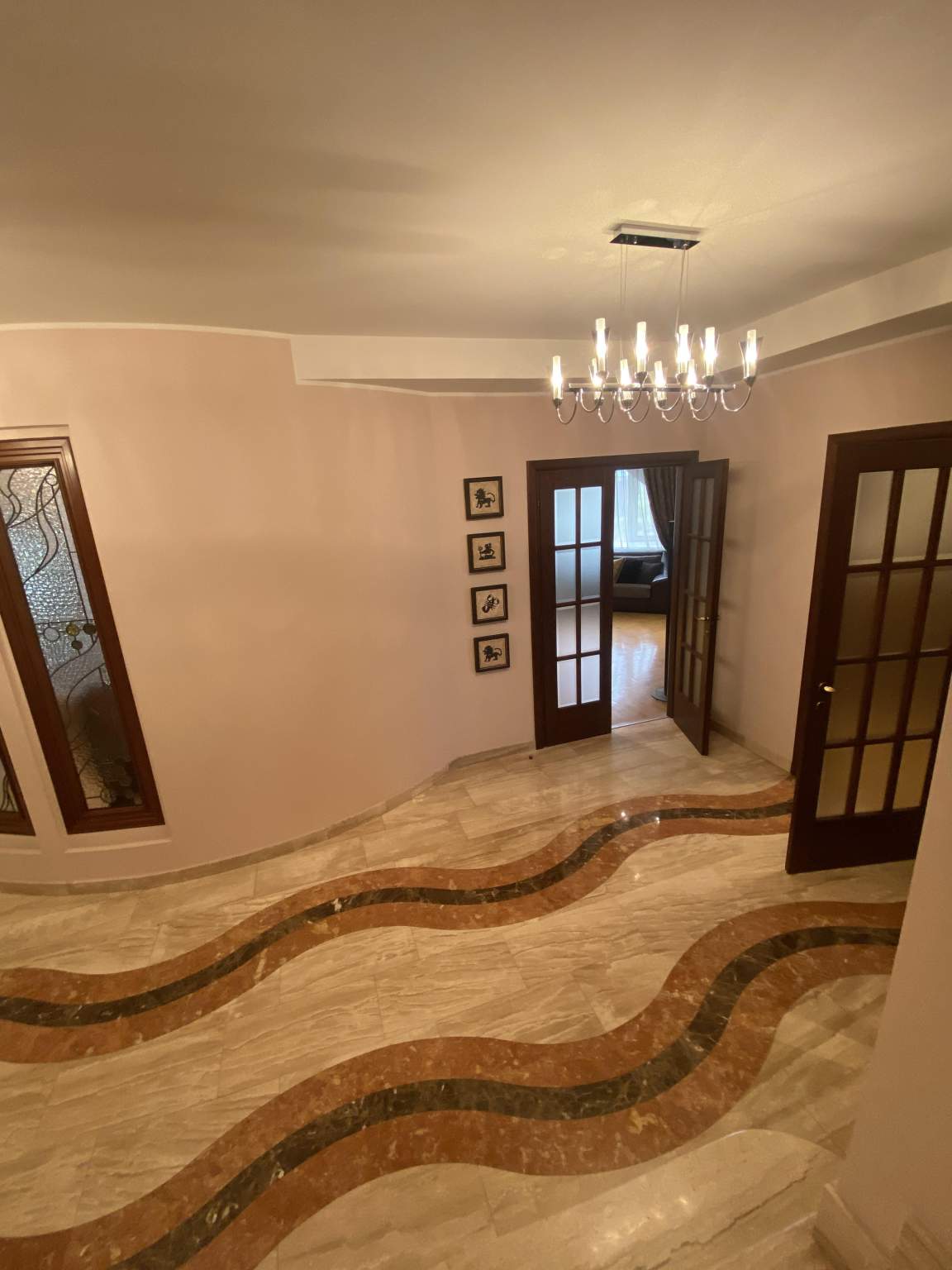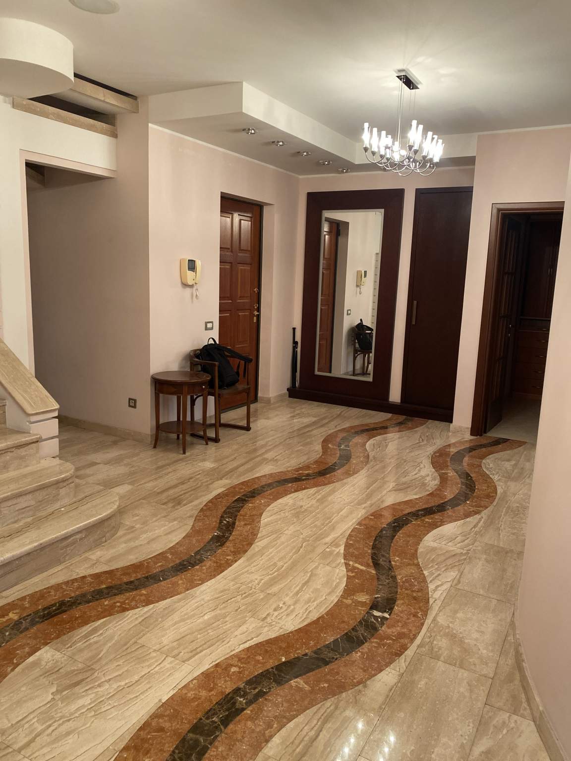 - Впечатляющая лестница, изготовленная полностью из мрамора и украшенная изысканными коваными перилами, станет центром восхищения гостей.