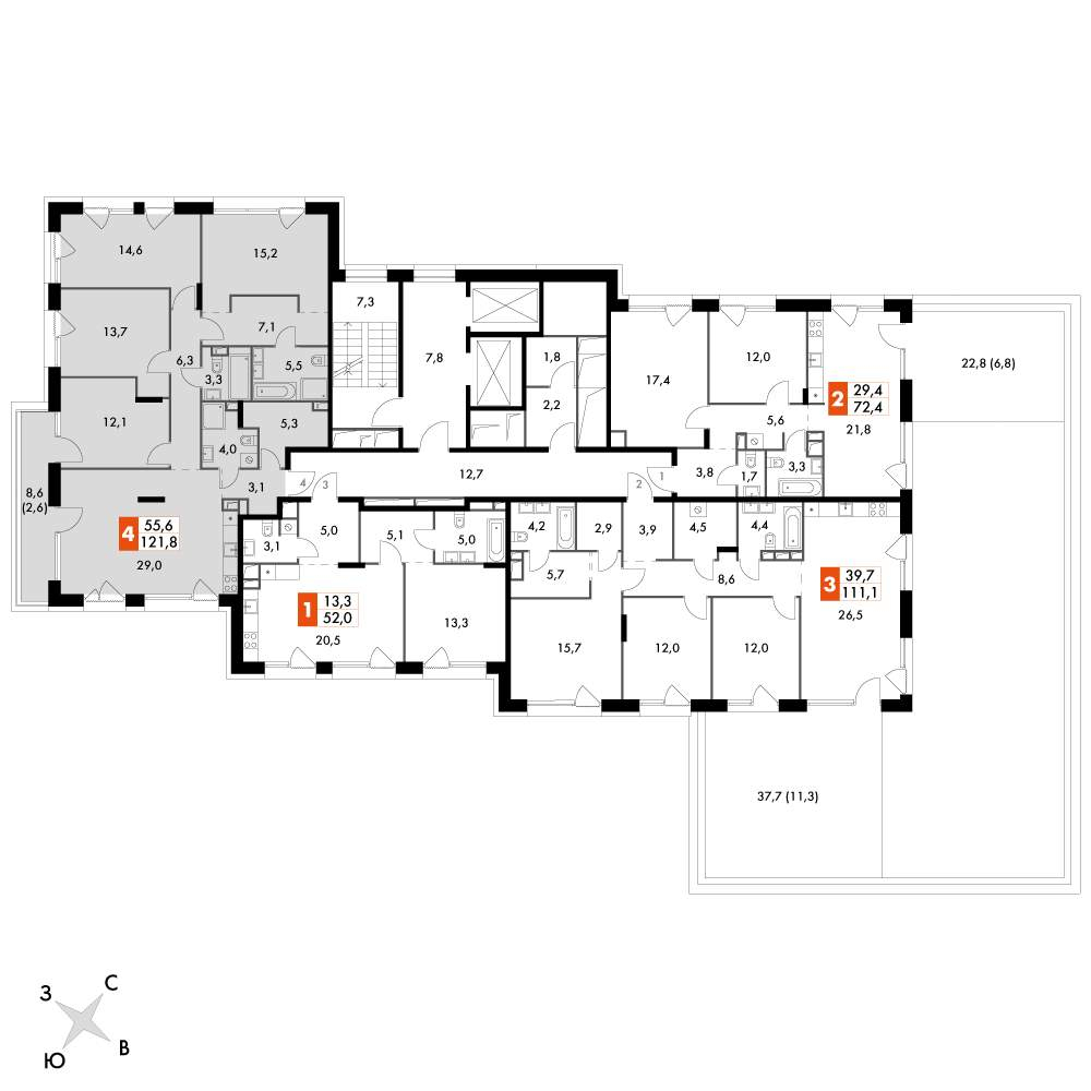 Продам 4-комнатную квартиру 121.8 м.кв.