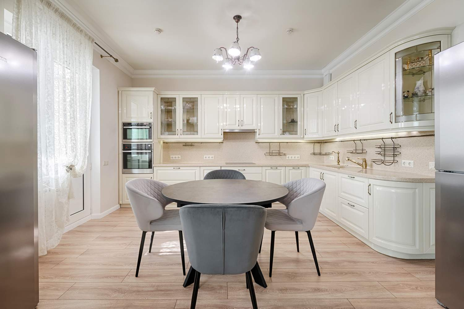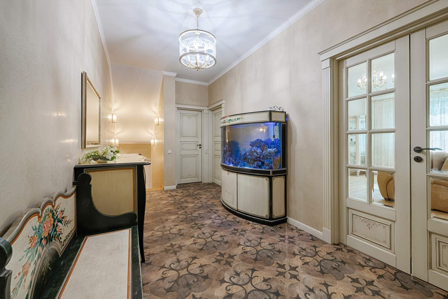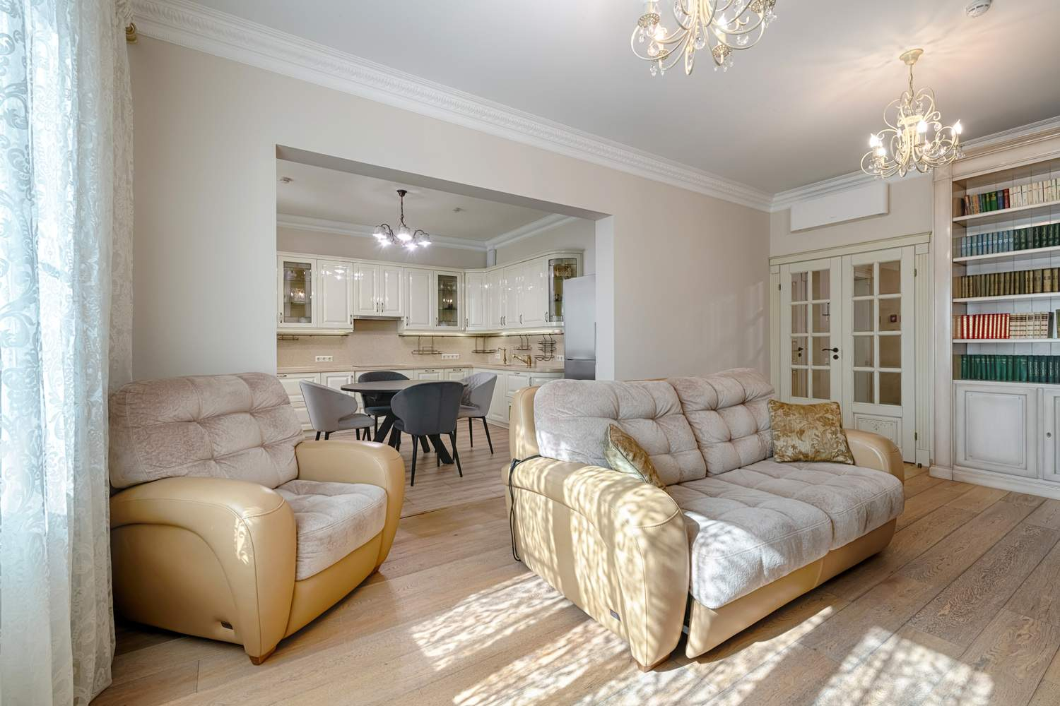 Просторная и светлая квартира площадью 146 кв. м, расположенная на 9 этаже 11-этажного монолитного дома премиум-класса.