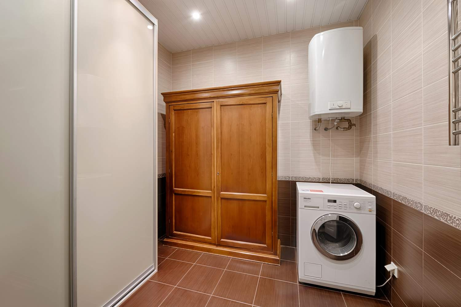 Нижний этаж: 2 изолированные спальни (одна с лоджией, другая с панорамными окнами) , санузел и прачечная.