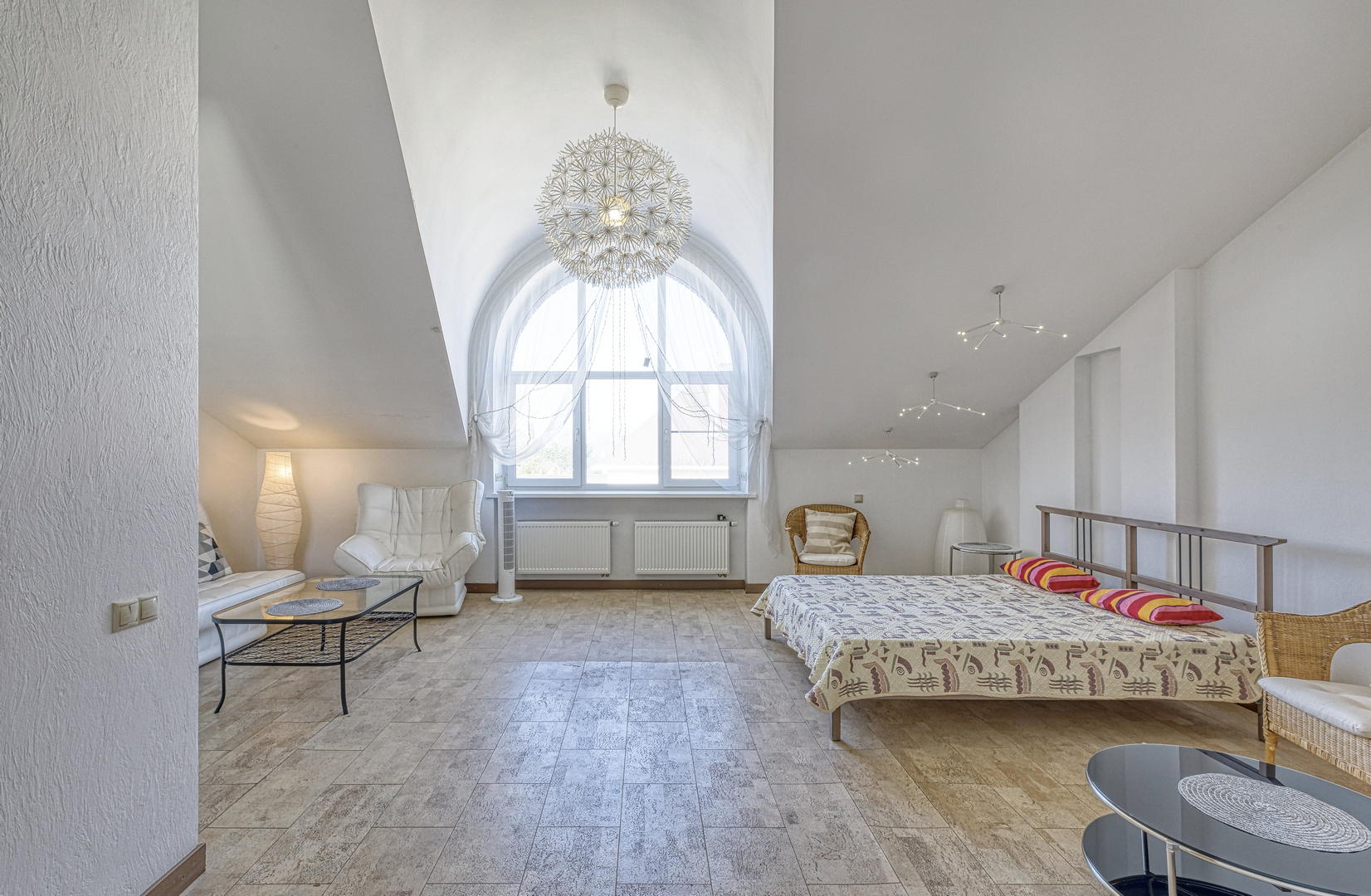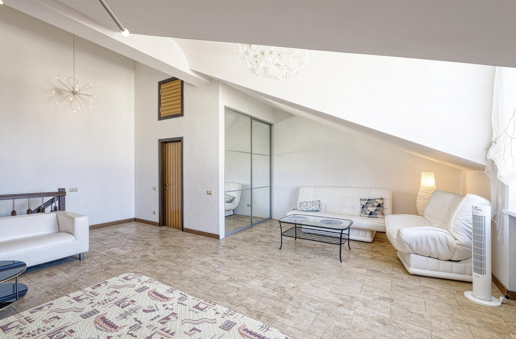 Высота потолков на 1 и 2 этажах - 3.1 м, на третьем этаже в коньке высота достигает 5.5 м.