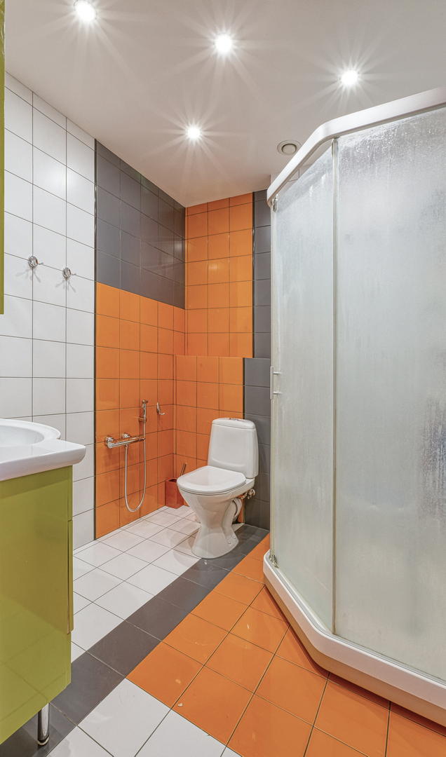 На первом этаже, котельная, гостевой санузел, гостинная и кухня-ниша с кладовой.