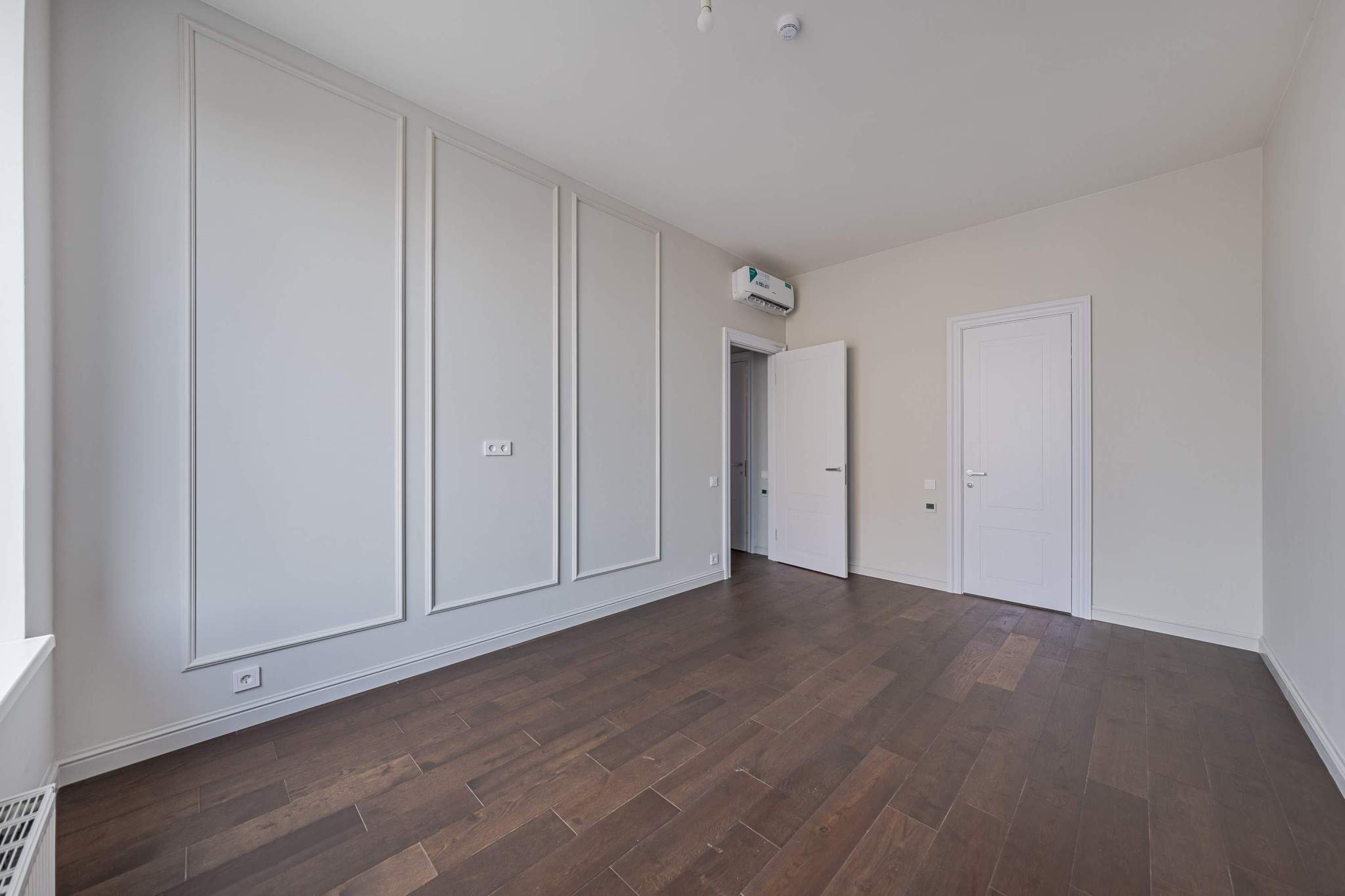 Отделка выполнена из высококачественных материалов: на полу - инженерная доска, на стенах - финишная покраска, потолок из ГКЛ белого цвета с нишами под шторы. Установлены точёные светильники и сделаны выводы под люстры. В каждой комнате будет установлена сплит-система с внутренним и внешним блоком, электрофурнитура (розетки, выключатели) . В санузлах установлена вся сантехника, тумбочка под раковину, оборудован теплый пол. Благодаря увеличенным окнам и высоким потолкам квартира наполнится светом и воздухом.