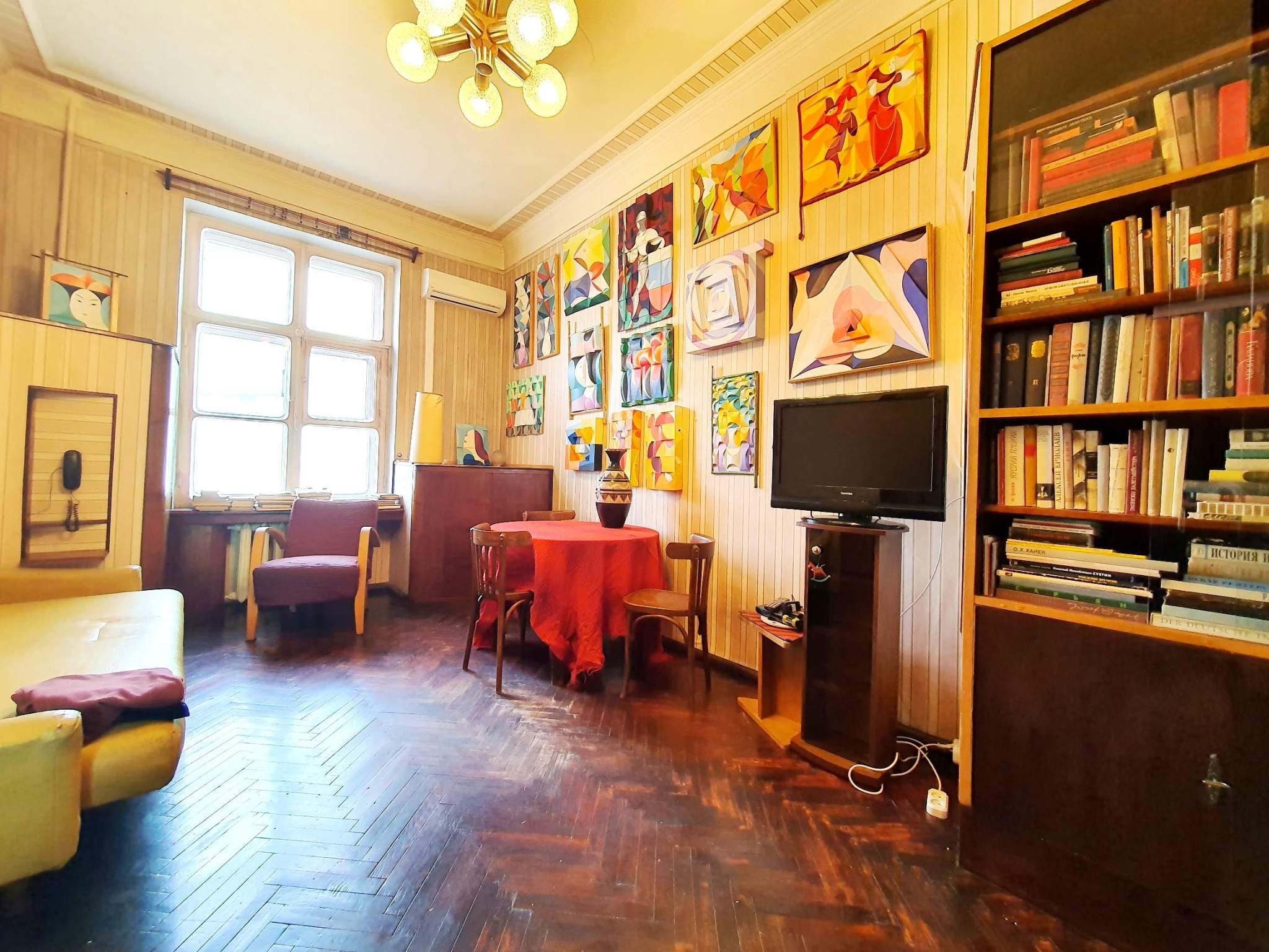 Двухкомнатная квартира в Тверском районе в 1 минуте пешком от метро Новослободская. Сталинский кирпичный дом с красивым фасадом, потолки 3,4 м, окна на две стороны (окна кухни - во двор, окна спальни и гостиной - в Весковский переулок) . Приличные соседи, чистый подъезд, закрытый внутренний двор с парковкой и детской площадкой.