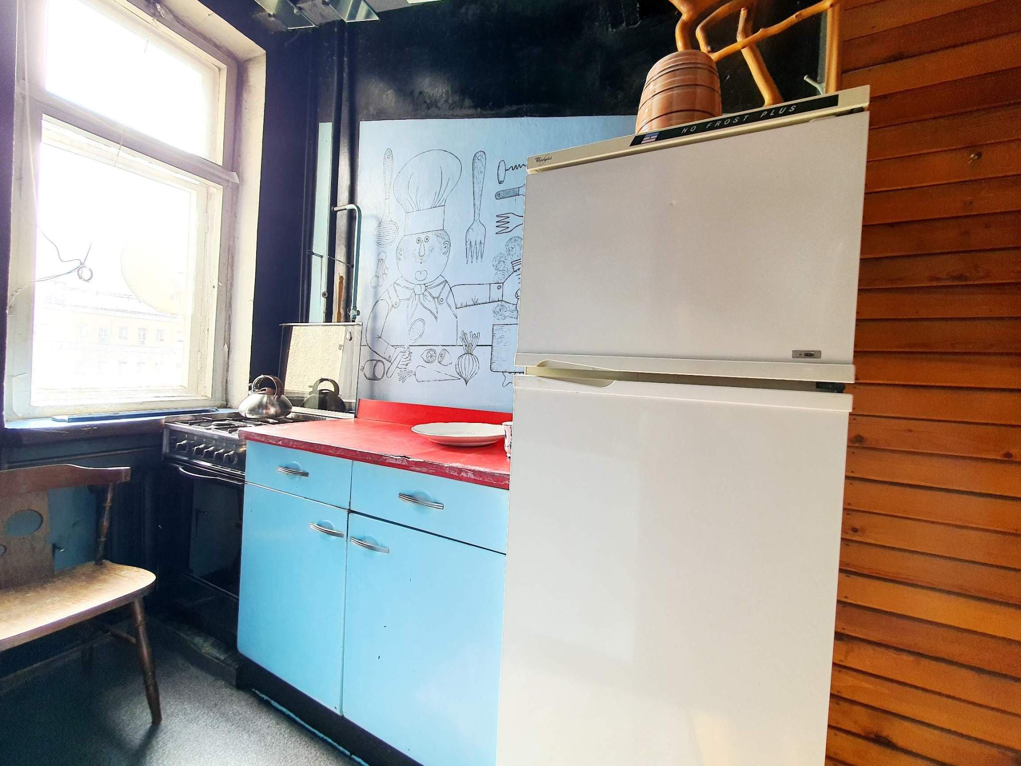 Двухкомнатная квартира в Тверском районе в 1 минуте пешком от метро Новослободская. Сталинский кирпичный дом с красивым фасадом, потолки 3,4 м, окна на две стороны (окна кухни - во двор, окна спальни и гостиной - в Весковский переулок) . Приличные соседи, чистый подъезд, закрытый внутренний двор с парковкой и детской площадкой.