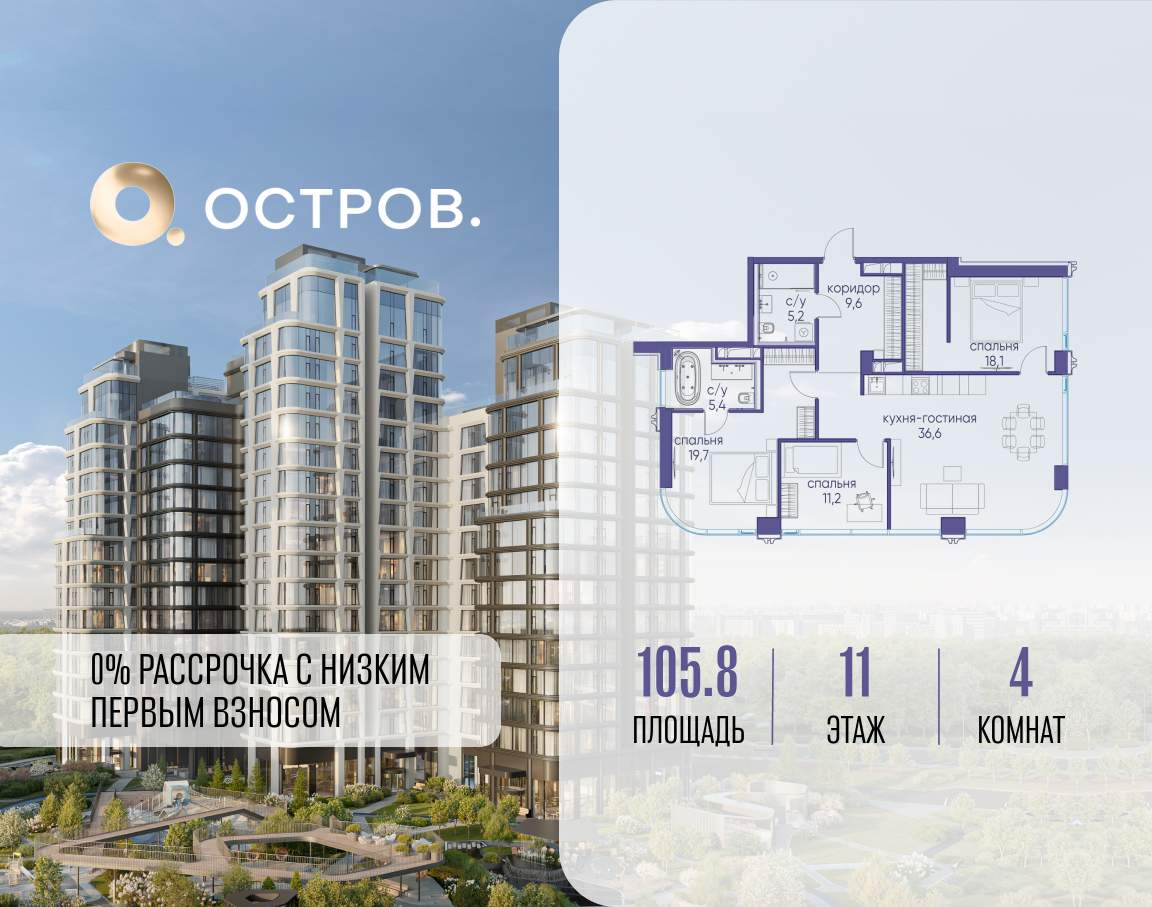 Продам 4-комнатную квартиру в новостройке 108.8 м.кв.