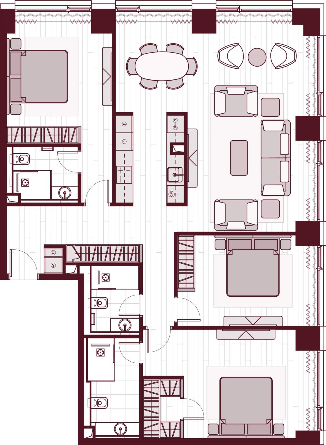 Жилая площадь 103.2 м2, предчистовая отделка, комнаты изолированные, окна выходят во двор.