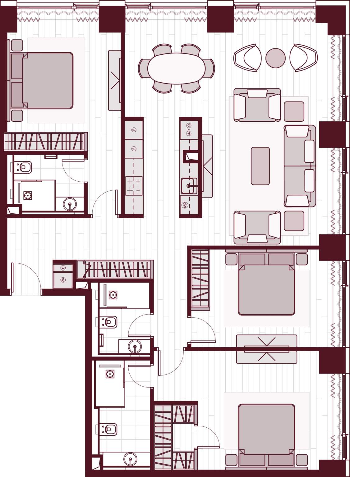 Жилая площадь 103.2 м2, предчистовая отделка, комнаты изолированные, окна выходят во двор.