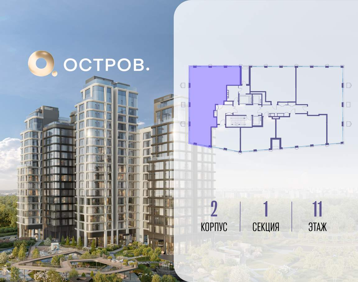 ОСТРОВ от Донстрой - жилой комплекс на западе Москвы, в Мневниковской пойме. Уникальное преимущество комплекса - в том, что он обособлен от города рекой и природным парком (650 га) . Благодаря природному окружению эта территория имеет лучший экологический рейтинг в столице. Кварталы ОСТРОВА объединены ландшафтным дизайном в единое пространство - с набережными и Центральным бульваром. На ОСТРОВЕ любые объекты, необходимые для полноценной жизни и отдыха, находятся на расстоянии 15-минутной прогулки. Торговый центр и супермаркеты, кафе и рестораны, фитнес, салоны красоты, школы и детские сады. А также крупнейший в Москве спортивный кластер.