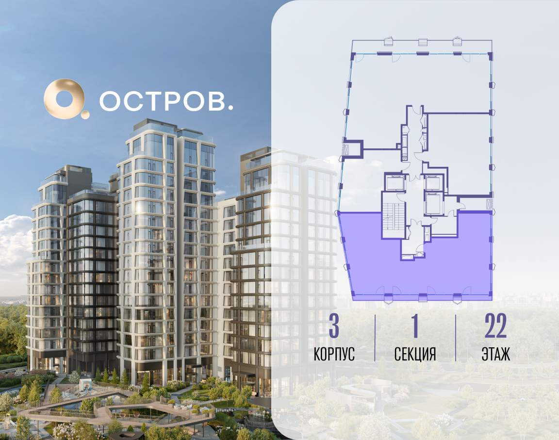 Продаётся квартира от застройщика: общая площадь 146.00 м, жилая 64.90 м, кухня 37.40 м, 22-й этаж, жилой квартал «Остров 12», корпус 3 (секция 1) . Срок сдачи: 1 квартал 2029 года.