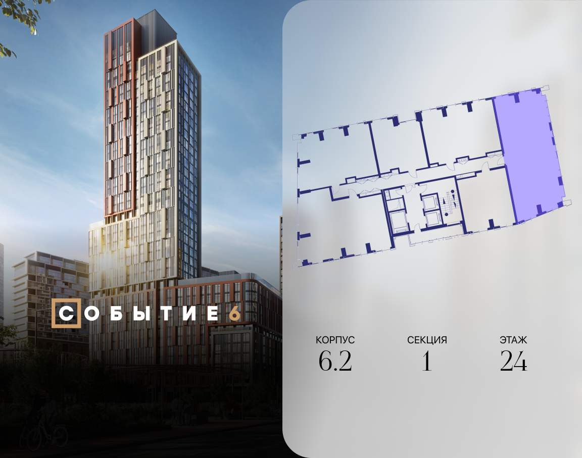 Продаётся 4-комнатная квартира от застройщика: общая площадь 111.50 м, жилая 54.90 м, кухня 24.00 м, 24-й этаж, жилой квартал «Событие-6», корпус 2 (секция 1) Срок сдачи: 1 квартал 2029 года.