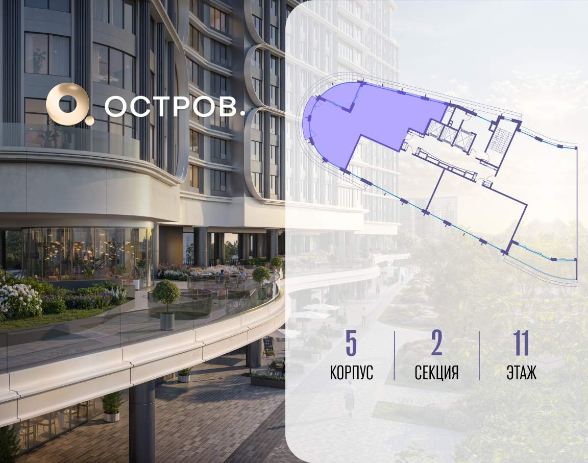 ОСТРОВ от Донстрой - жилой комплекс на западе Москвы, в Мневниковской пойме. Уникальное преимущество комплекса - в том, что он обособлен от города рекой и природным парком (650 га) . Благодаря природному окружению эта территория имеет лучший экологический рейтинг в столице. Кварталы ОСТРОВА объединены ландшафтным дизайном в единое пространство - с набережными и Центральным бульваром. На ОСТРОВЕ любые объекты, необходимые для полноценной жизни и отдыха, находятся на расстоянии 15-минутной прогулки. Торговый центр и супермаркеты, кафе и рестораны, фитнес, салоны красоты, школы и детские сады. А также крупнейший в Москве спортивный кластер.