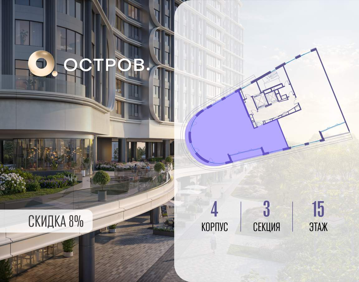 ОСТРОВ от Донстрой - жилой комплекс на западе Москвы, в Мневниковской пойме. Уникальное преимущество комплекса - в том, что он обособлен от города рекой и природным парком (650 га) . Благодаря природному окружению эта территория имеет лучший экологический рейтинг в столице. Кварталы ОСТРОВА объединены ландшафтным дизайном в единое пространство - с набережными и Центральным бульваром. На ОСТРОВЕ любые объекты, необходимые для полноценной жизни и отдыха, находятся на расстоянии 15-минутной прогулки. Торговый центр и супермаркеты, кафе и рестораны, фитнес, салоны красоты, школы и детские сады. А также крупнейший в Москве спортивный кластер.