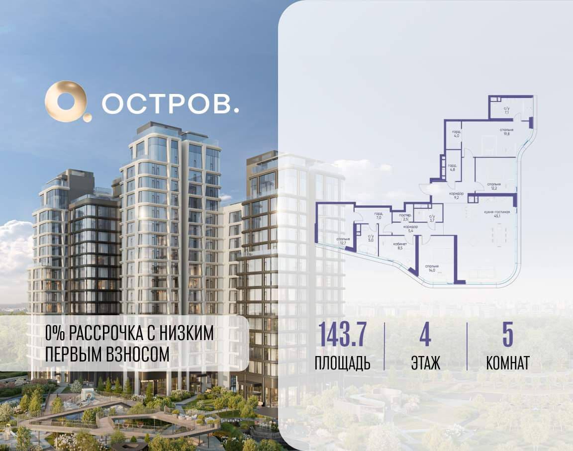 Продаётся 4-комнатная квартира от застройщика: общая площадь 120.70 м, жилая 55.60 м, кухня 27.50 м, 4-й этаж, жилой квартал «Событие-6», корпус 2 (секция 5) Срок сдачи: 1 квартал 2029 года.