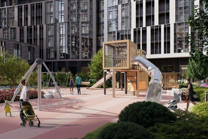 Внутренний двор - настоящее продолжение вашего дома: закрытая охраняемая территория без машин, развивающие детские площадки, воркауты-зоны для тех, кто хочет быть в форме, площади для праздников и посиделок с соседями.