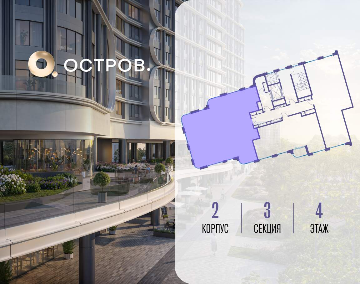 ОСТРОВ от Донстрой - жилой комплекс на западе Москвы, в Мневниковской пойме. Уникальное преимущество комплекса - в том, что он обособлен от города рекой и природным парком (650 га) . Благодаря природному окружению эта территория имеет лучший экологический рейтинг в столице. Кварталы ОСТРОВА объединены ландшафтным дизайном в единое пространство - с набережными и Центральным бульваром. На ОСТРОВЕ любые объекты, необходимые для полноценной жизни и отдыха, находятся на расстоянии 15-минутной прогулки. Торговый центр и супермаркеты, кафе и рестораны, фитнес, салоны красоты, школы и детские сады. А также крупнейший в Москве спортивный кластер.