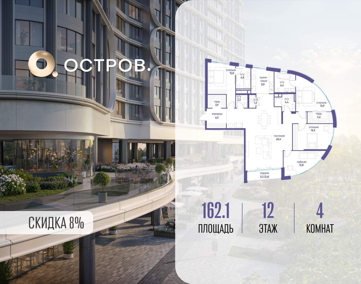 Продаётся 4-комн. квартира от застройщика: общая площадь 162.10 м, жилая 60.00 м, кухня 74.30 м, 12-й этаж, жилой квартал «Остров 7», корпус 4 (секция 1) . Срок сдачи: 1 квартал 2028 года.