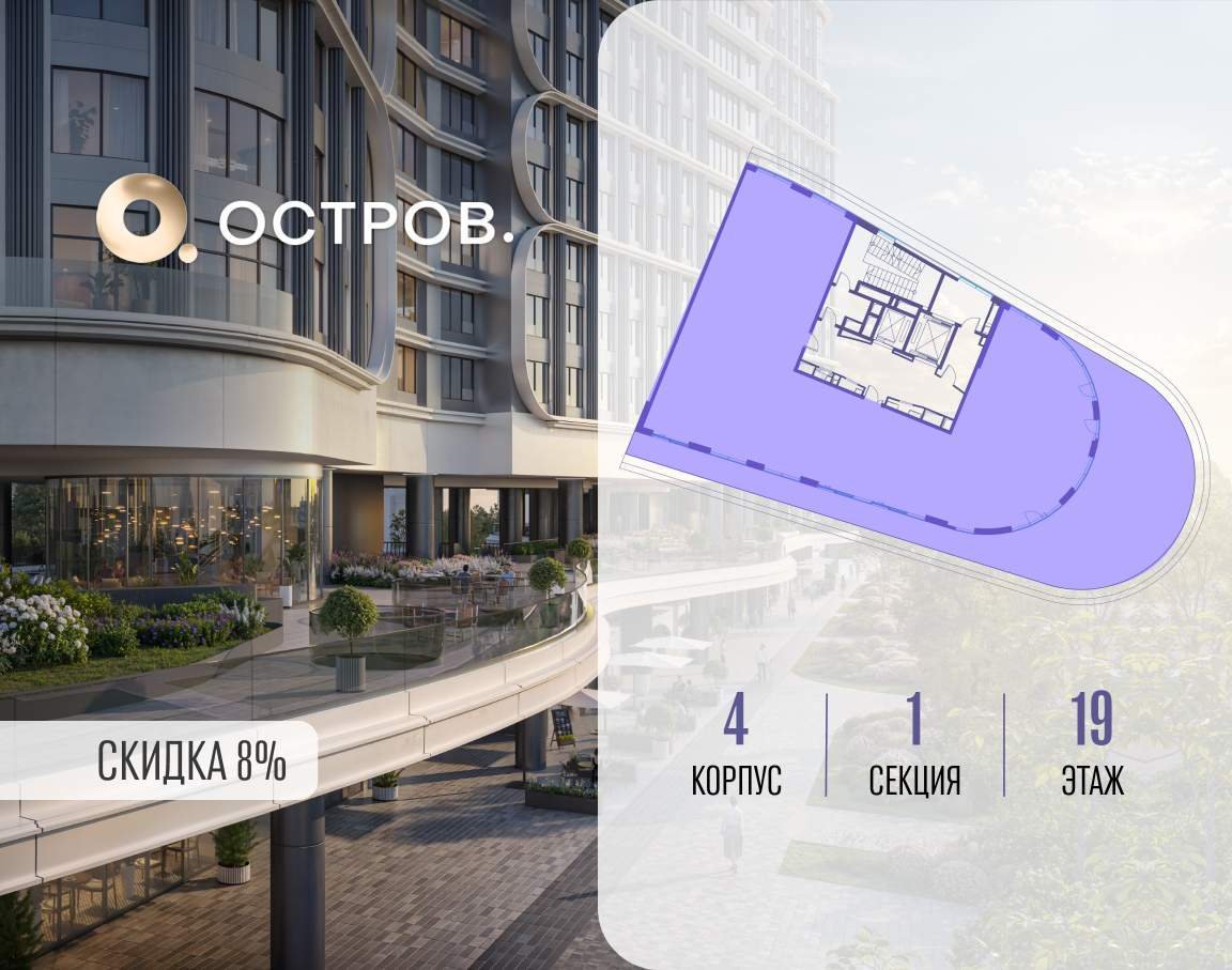 ОСТРОВ от Донстрой - жилой комплекс на западе Москвы, в Мневниковской пойме. Уникальное преимущество комплекса - в том, что он обособлен от города рекой и природным парком (650 га) . Благодаря природному окружению эта территория имеет лучший экологический рейтинг в столице. Кварталы ОСТРОВА объединены ландшафтным дизайном в единое пространство - с набережными и Центральным бульваром. На ОСТРОВЕ любые объекты, необходимые для полноценной жизни и отдыха, находятся на расстоянии 15-минутной прогулки. Торговый центр и супермаркеты, кафе и рестораны, фитнес, салоны красоты, школы и детские сады. А также крупнейший в Москве спортивный кластер.