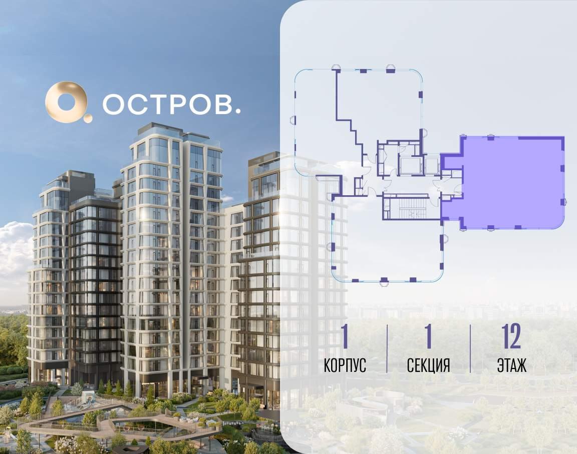 Продаётся 4-комн. квартира от застройщика: общая площадь 140.90 м, жилая 55.90 м, кухня 42.60 м, 12-й этаж, жилой квартал «Остров 12», корпус 1 (секция 1) . Срок сдачи: 1 квартал 2029 года.