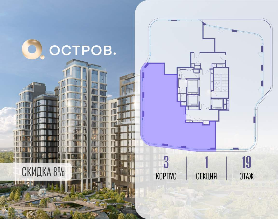 ОСТРОВ от Донстрой - жилой комплекс на западе Москвы, в Мневниковской пойме. Уникальное преимущество комплекса - в том, что он обособлен от города рекой и природным парком (650 га) . Благодаря природному окружению эта территория имеет лучший экологический рейтинг в столице. Кварталы ОСТРОВА объединены ландшафтным дизайном в единое пространство - с набережными и Центральным бульваром. На ОСТРОВЕ любые объекты, необходимые для полноценной жизни и отдыха, находятся на расстоянии 15-минутной прогулки. Торговый центр и супермаркеты, кафе и рестораны, фитнес, салоны красоты, школы и детские сады. А также крупнейший в Москве спортивный кластер.