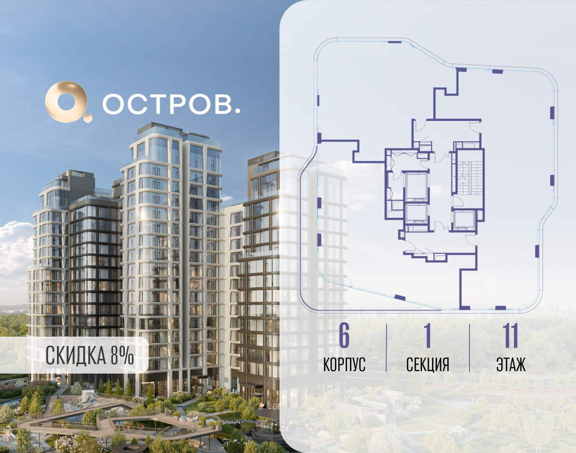 ОСТРОВ от Донстрой - жилой комплекс на западе Москвы, в Мневниковской пойме. Уникальное преимущество комплекса - в том, что он обособлен от города рекой и природным парком (650 га) . Благодаря природному окружению эта территория имеет лучший экологический рейтинг в столице. Кварталы ОСТРОВА объединены ландшафтным дизайном в единое пространство - с набережными и Центральным бульваром. На ОСТРОВЕ любые объекты, необходимые для полноценной жизни и отдыха, находятся на расстоянии 15-минутной прогулки. Торговый центр и супермаркеты, кафе и рестораны, фитнес, салоны красоты, школы и детские сады. А также крупнейший в Москве спортивный кластер.