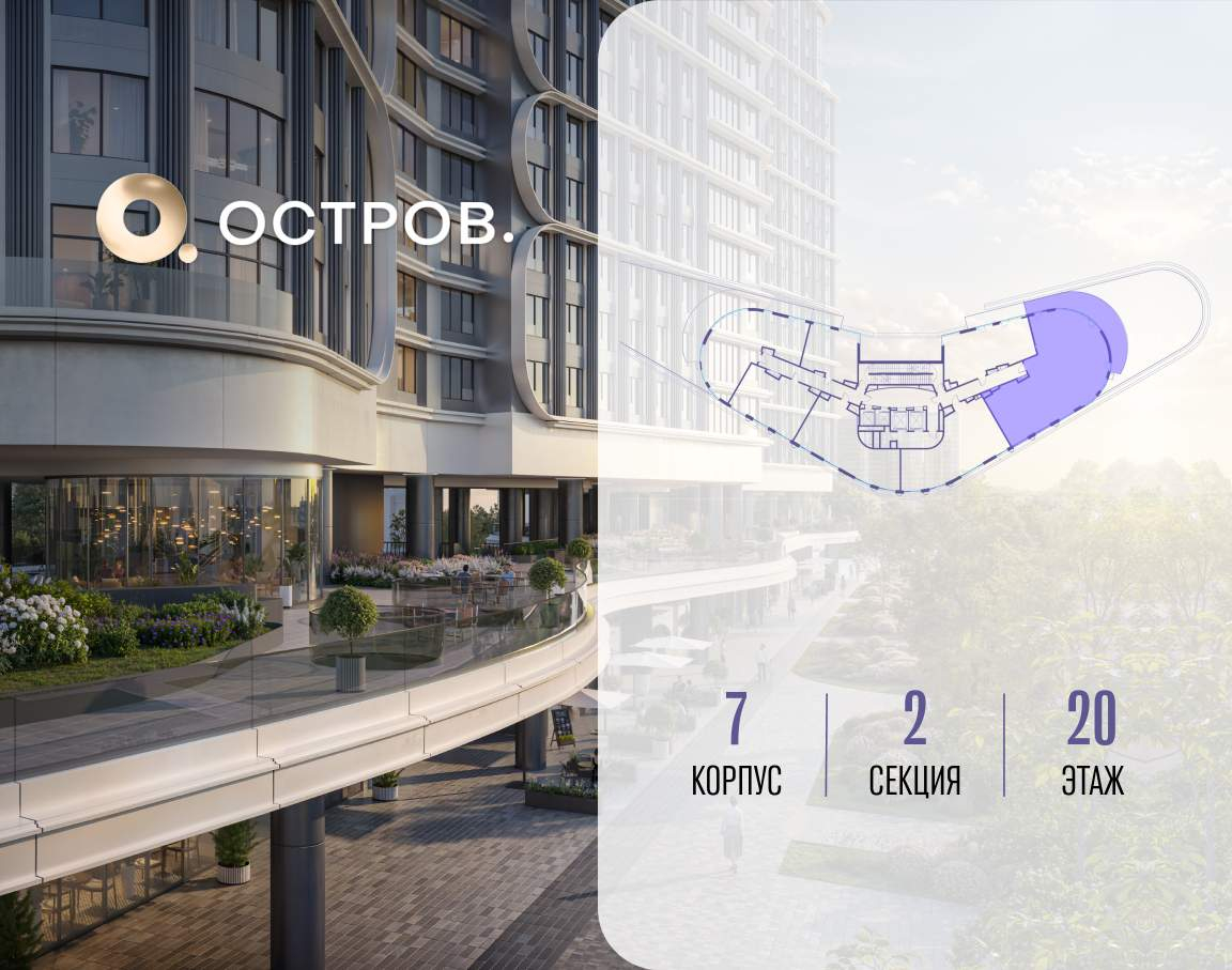 Продаётся квартира от застройщика: общая площадь 190.40 м, жилая 69.30 м, кухня 49.00 м, 20-й этаж, жилой квартал «Остров 7», корпус 7 (секция 2) . Срок сдачи: 3 квартал 2028 года.