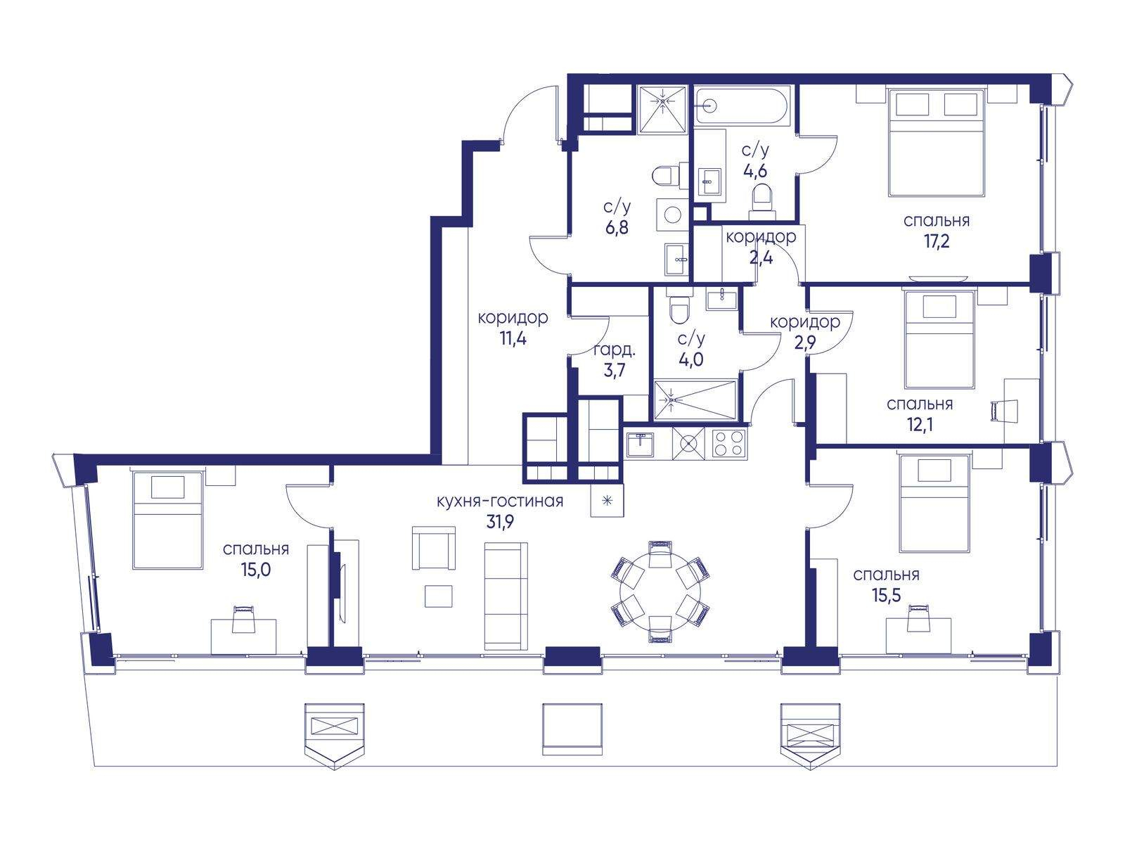 Продаётся 4-комн. квартира от застройщика: общая площадь 127.50 м, жилая 59.80 м, кухня 31.90 м, 17-й этаж, жилой квартал «Остров 14», корпус 4 (секция 1) . Срок сдачи: 2 квартал 2029 года.