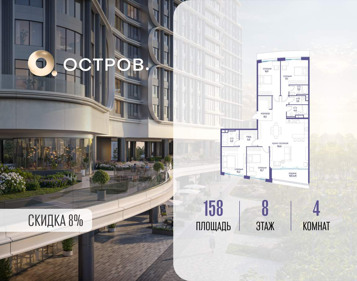 Остров. 14 ДОХОДНЫЙ ДОМ - ЧАСТЬ ПРОЕКТА «ОСТРОВ», В 10 МИНУТАХ ОТ МОСКВА-СИТИ, В 15 МИНУТАХ