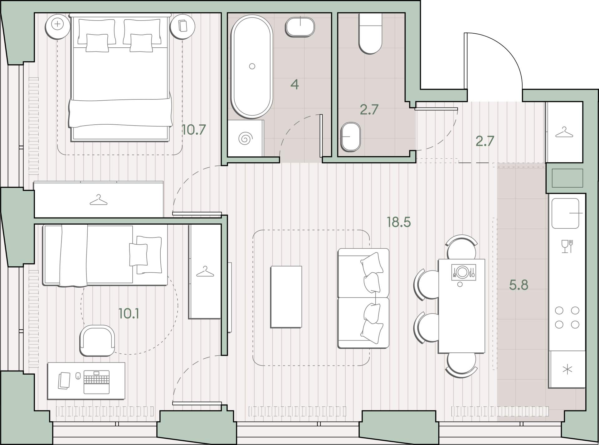 Жилая площадь 39.3 м2, кухня 5.8 м2, квартира без отделки, комнаты изолированные.