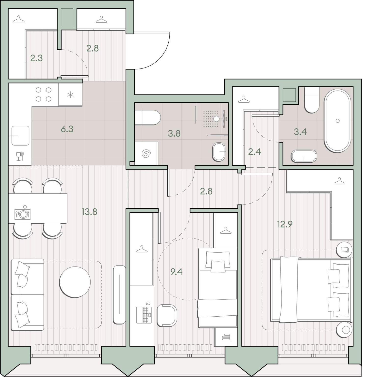 Продам двухкомнатную квартиру в новостройке 59.9 м.кв.