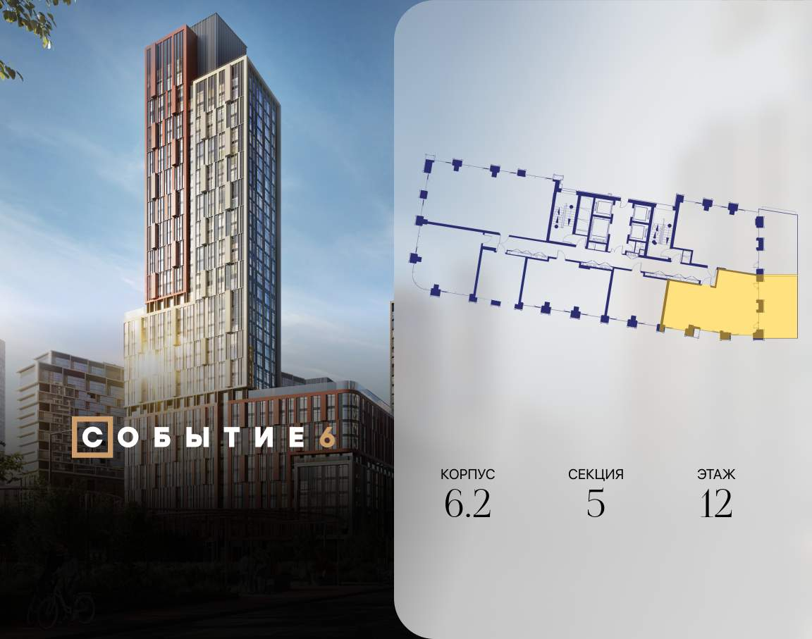 Продаётся 2-комнатная квартира от застройщика: общая площадь 78.20 м, жилая 23.40 м, кухня 28.90 м, 12-й этаж, жилой квартал «Событие-6», корпус 2 (секция 5) Срок сдачи: 1 квартал 2029 года.