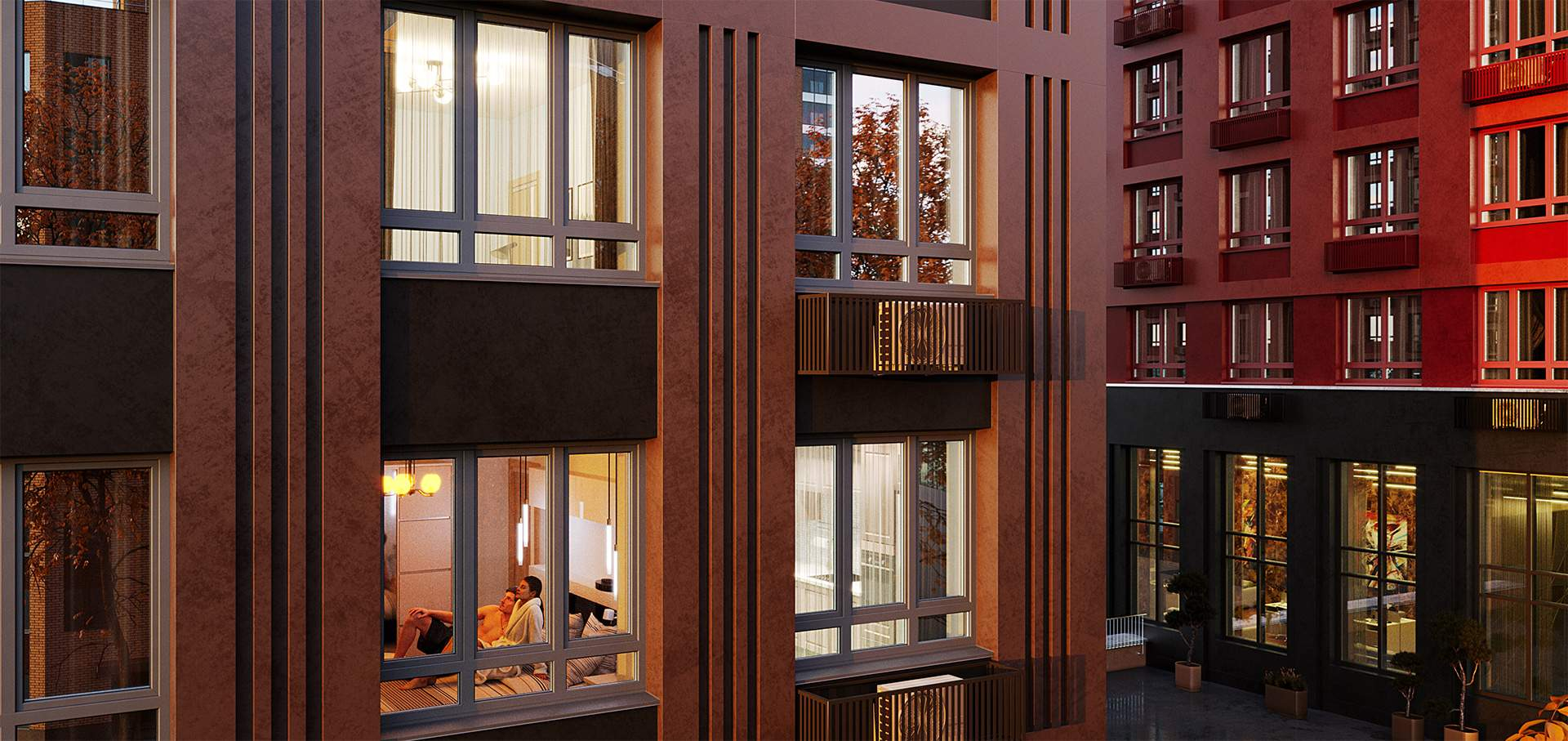 Разновысотные здания придают динамику архитектуре и выделяют жилой комплекс среди другой застройки. В концепции проекта используются вентилируемые фасады с металлическими панелями и декоративной штукатуркой. Каждая секция имеет свой характер и цветовое решение. Покупателям предлагаются лоты с увеличенным остеклением и несколькими видами балконов.