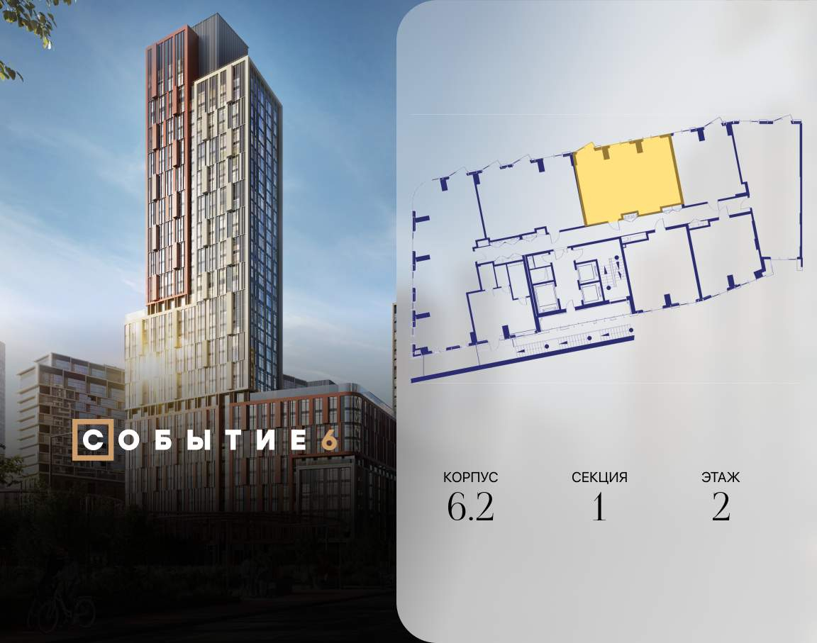 Продаётся 2-комнатная квартира от застройщика: общая площадь 73.00 м, жилая 31.40 м, кухня 24.40 м, 2-й этаж, жилой квартал «Событие-6», корпус 2 (секция 1) Срок сдачи: 1 квартал 2029 года.