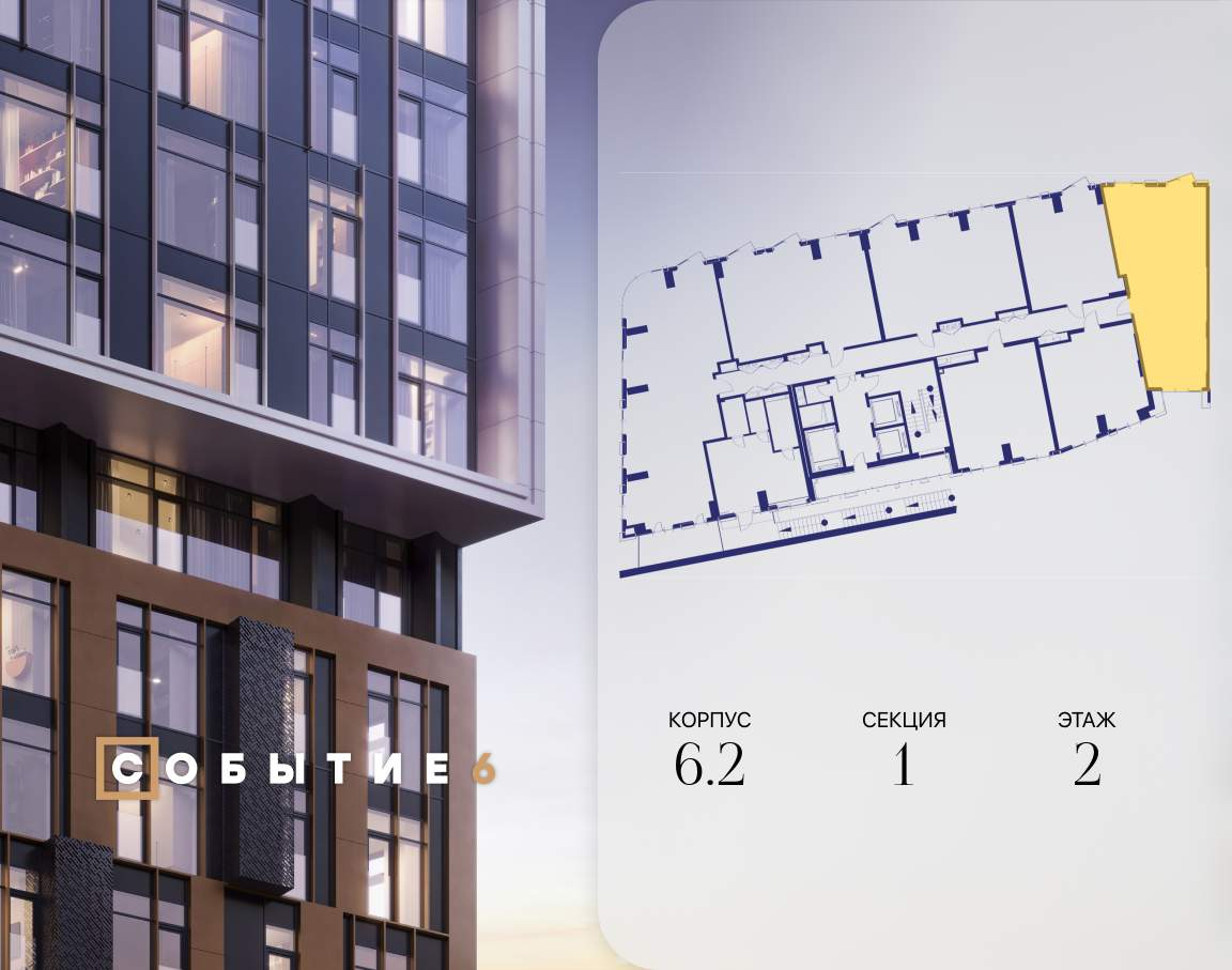 Продаётся 2-комнатная квартира от застройщика: общая площадь 78.00 м, жилая 29.70 м, кухня 22.88 м, 2-й этаж, жилой квартал «Событие-6», корпус 2 (секция 1) Срок сдачи: 4 квартал 2029 года.