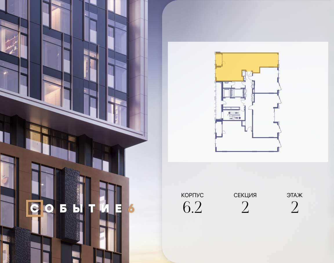 Продаётся 2-комнатная квартира от застройщика: общая площадь 70.80 м, жилая 30.30 м, кухня 21.80 м, 2-й этаж, жилой квартал «Событие-6», корпус 2 (секция 2) Срок сдачи: 4 квартал 2029 года.