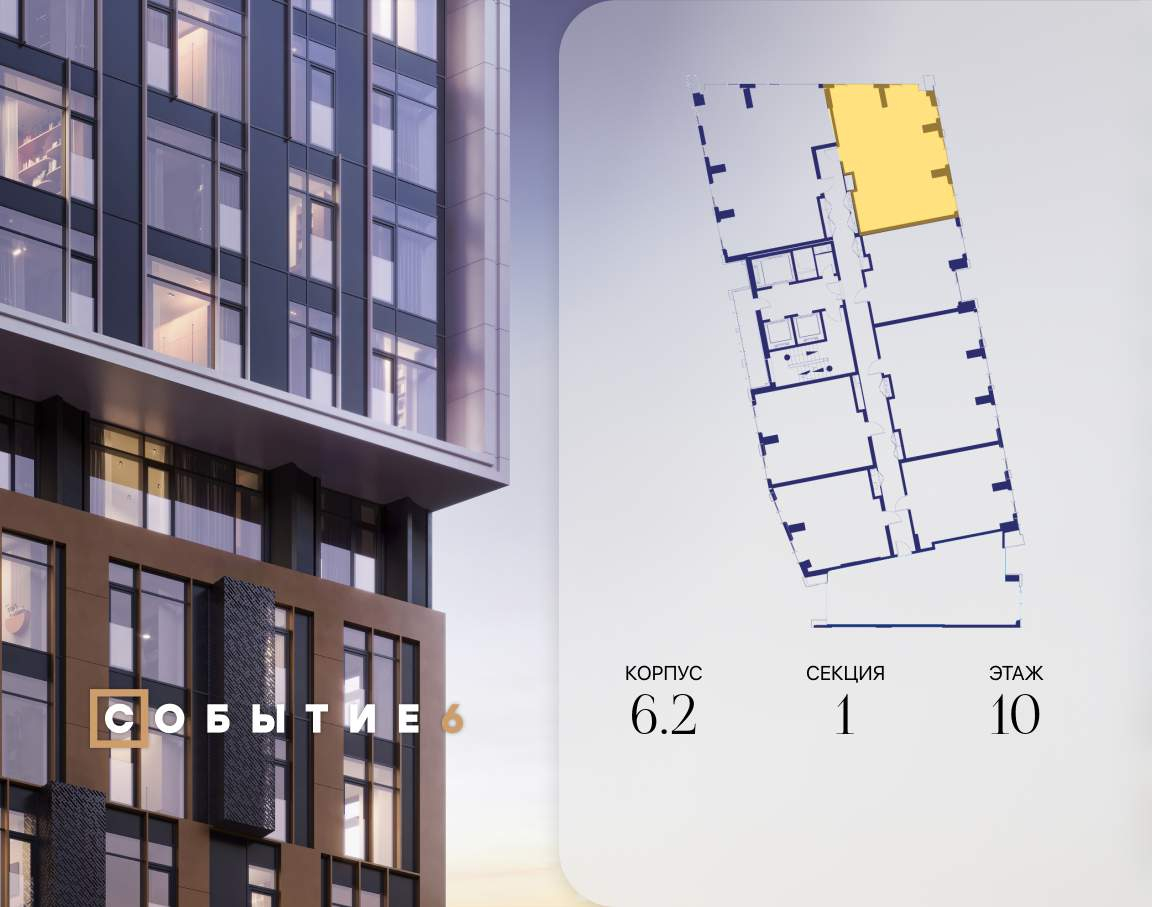 Продаётся 2-комнатная квартира от застройщика: общая площадь 74.20 м, жилая 28.60 м, кухня 26.40 м, 10-й этаж, жилой квартал «Событие-6», корпус 2 (секция 1) Срок сдачи: 4 квартал 2029 года.