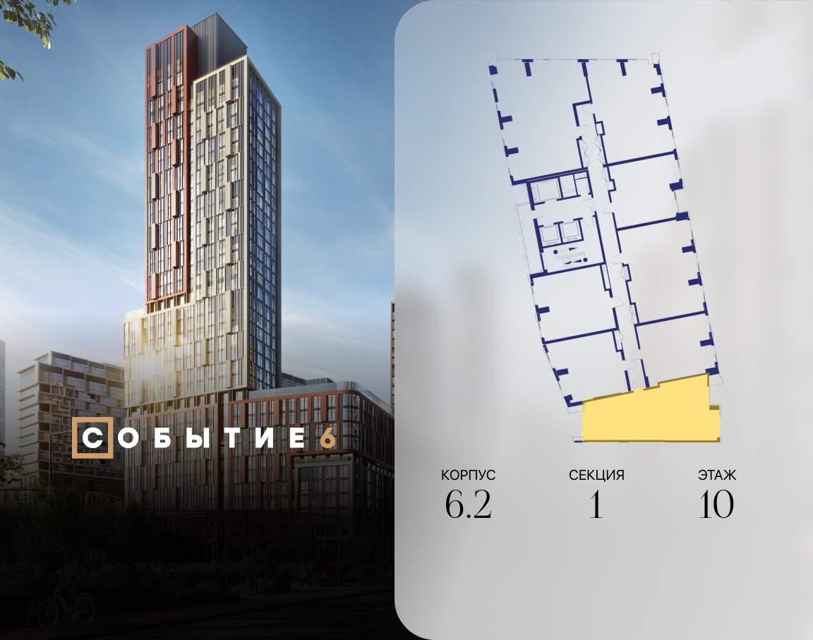 Продаётся 2-комнатная квартира от застройщика: общая площадь 73.60 м, жилая 30.00 м, кухня 22.00 м, 10-й этаж, жилой квартал «Событие-6», корпус 2 (секция 1) Срок сдачи: 1 квартал 2029 года.