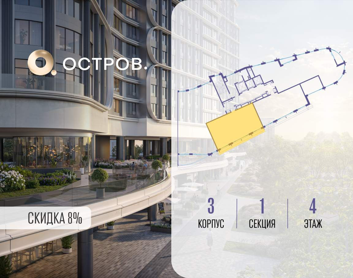 ОСТРОВ от Донстрой - жилой комплекс на западе Москвы, в Мневниковской пойме. Уникальное преимущество комплекса - в том, что он обособлен от города рекой и природным парком (650 га) . Благодаря природному окружению эта территория имеет лучший экологический рейтинг в столице. Кварталы ОСТРОВА объединены ландшафтным дизайном в единое пространство - с набережными и Центральным бульваром. На ОСТРОВЕ любые объекты, необходимые для полноценной жизни и отдыха, находятся на расстоянии 15-минутной прогулки. Торговый центр и супермаркеты, кафе и рестораны, фитнес, салоны красоты, школы и детские сады. А также крупнейший в Москве спортивный кластер.