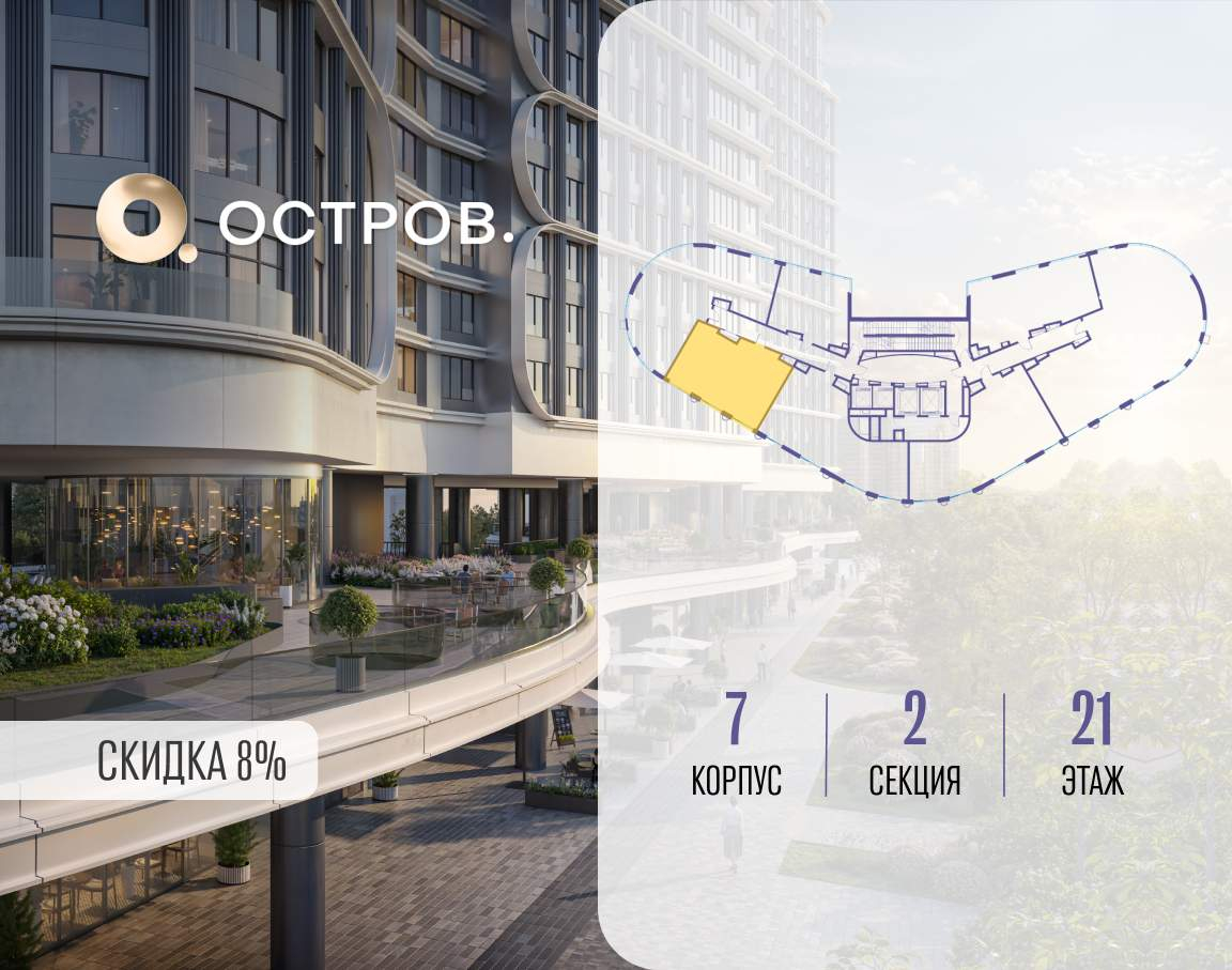 ОСТРОВ от Донстрой - жилой комплекс на западе Москвы, в Мневниковской пойме. Уникальное преимущество комплекса - в том, что он обособлен от города рекой и природным парком (650 га) . Благодаря природному окружению эта территория имеет лучший экологический рейтинг в столице. Кварталы ОСТРОВА объединены ландшафтным дизайном в единое пространство - с набережными и Центральным бульваром. На ОСТРОВЕ любые объекты, необходимые для полноценной жизни и отдыха, находятся на расстоянии 15-минутной прогулки. Торговый центр и супермаркеты, кафе и рестораны, фитнес, салоны красоты, школы и детские сады. А также крупнейший в Москве спортивный кластер.