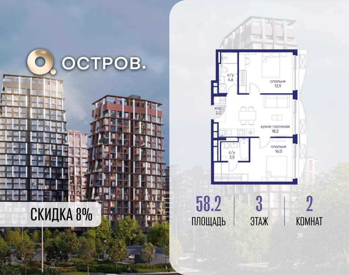 Остров. 14 ДОХОДНЫЙ ДОМ - ЧАСТЬ ПРОЕКТА «ОСТРОВ», В 10 МИНУТАХ ОТ МОСКВА-СИТИ, В 15 МИНУТАХ
