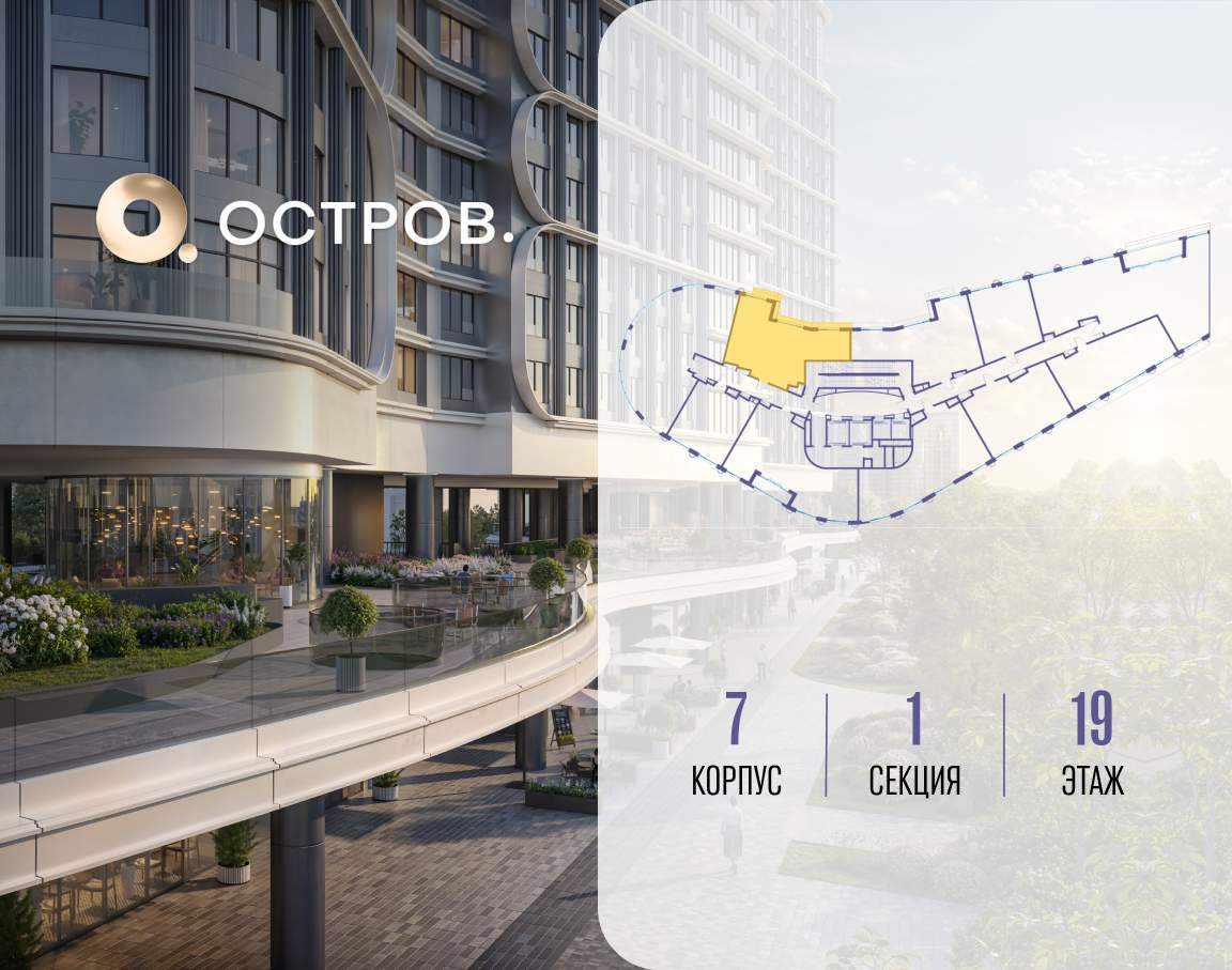 Продаётся 2-комн. квартира от застройщика: общая площадь 71.60 м, жилая 32.10 м, кухня 26.10 м, 19-й этаж, жилой квартал «Остров 7», корпус 7 (секция 1) . Срок сдачи: 3 квартал 2028 года.