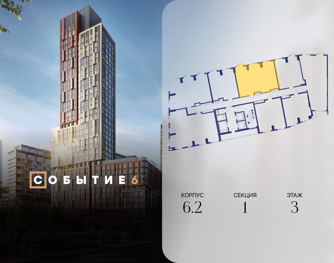 Продаётся 2-комнатная квартира от застройщика: общая площадь 72.80 м, жилая 31.40 м, кухня 24.40 м, 3-й этаж, жилой квартал «Событие-6», корпус 2 (секция 1) Срок сдачи: 1 квартал 2029 года.