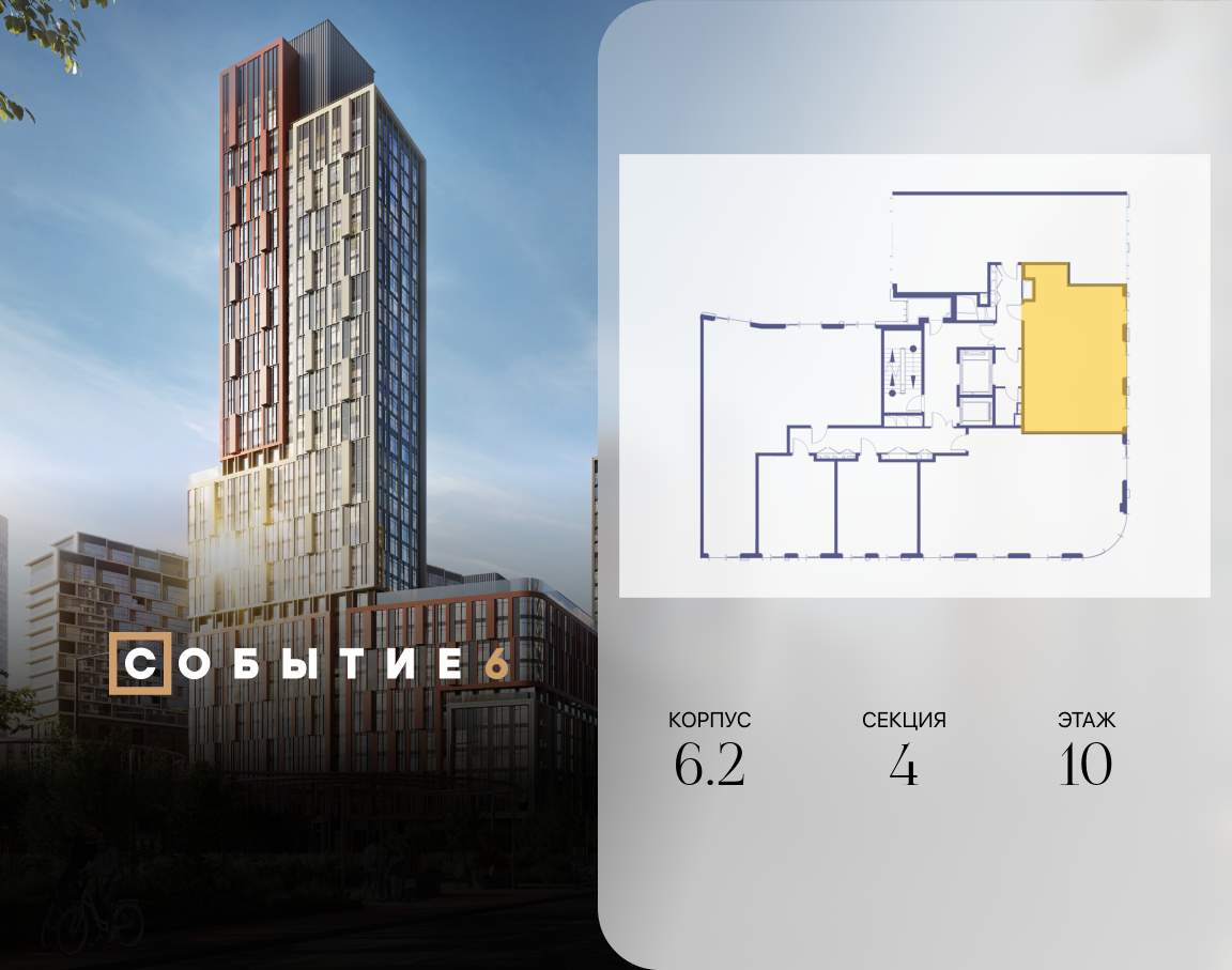 Продаётся 2-комнатная квартира от застройщика: общая площадь 64.10 м, жилая 27.60 м, кухня 21.50 м, 10-й этаж, жилой квартал «Событие-6», корпус 2 (секция 4) Срок сдачи: 1 квартал 2029 года.