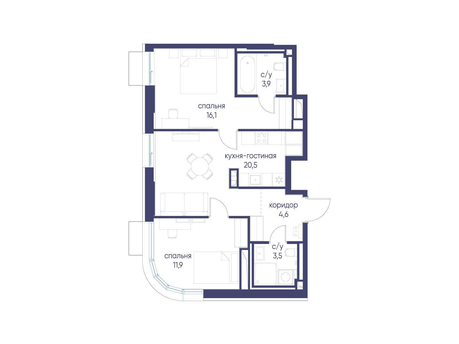 Продается 2-комнатная квартира от застройщика: общая площадь 60.50 м, жилая 28.00 м, кухня 20.50 м, 3-й этаж, жилой квартал «Гордость», корпус 40 (секция 1) . Срок сдачи: 2 квартал 2029 года.
