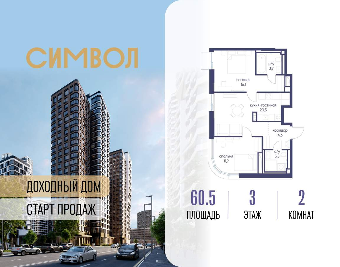 Продается 2-комнатная квартира от застройщика: общая площадь 52.50 м, жилая 24.70 м, кухня 17.80 м, 11-й этаж, жилой квартал «Гордость», корпус 40 (секция 1) . Срок сдачи: 2 квартал 2029 года.