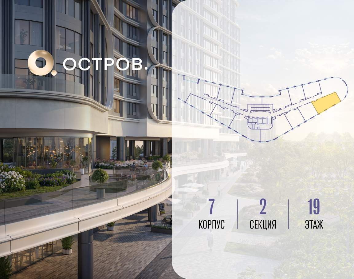 Продаётся 2-комн. квартира от застройщика: общая площадь 63.60 м, жилая 25.70 м, кухня 22.10 м, 19-й этаж, жилой квартал «Остров 7», корпус 7 (секция 2) . Срок сдачи: 3 квартал 2028 года.