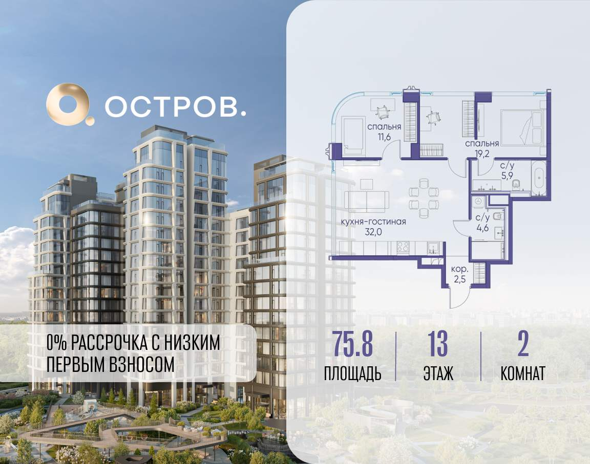 ОСТРОВ от Донстрой - жилой комплекс на западе Москвы, в Мневниковской пойме. Уникальное преимущество комплекса - в том, что он обособлен от города рекой и природным парком (650 га) . Благодаря природному окружению эта территория имеет лучший экологический рейтинг в столице. Кварталы ОСТРОВА объединены ландшафтным дизайном в единое пространство - с набережными и Центральным бульваром. На ОСТРОВЕ любые объекты, необходимые для полноценной жизни и отдыха, находятся на расстоянии 15-минутной прогулки. Торговый центр и супермаркеты, кафе и рестораны, фитнес, салоны красоты, школы и детские сады. А также крупнейший в Москве спортивный кластер.