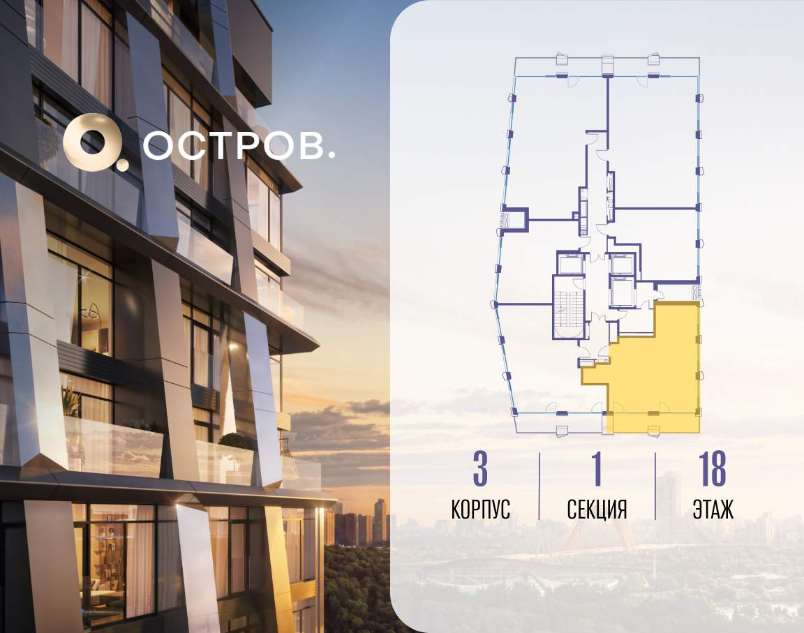ОСТРОВ от Донстрой - жилой комплекс на западе Москвы, в Мневниковской пойме. Уникальное преимущество комплекса - в том, что он обособлен от города рекой и природным парком (650 га) . Благодаря природному окружению эта территория имеет лучший экологический рейтинг в столице. Кварталы ОСТРОВА объединены ландшафтным дизайном в единое пространство - с набережными и Центральным бульваром. На ОСТРОВЕ любые объекты, необходимые для полноценной жизни и отдыха, находятся на расстоянии 15-минутной прогулки. Торговый центр и супермаркеты, кафе и рестораны, фитнес, салоны красоты, школы и детские сады. А также крупнейший в Москве спортивный кластер.